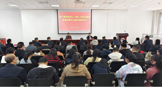 为深入学习贯彻党的二十届三中全会精神,按照省国资委安排,10月23日,学习贯彻党的二十届三中全会精神省属监管企业宣讲团到研究院宣讲,省属监管企业宣讲团成员、省国资委企业队伍建设处处长唐志国作宣讲辅导,研究院党委副书记、副院长周波主持会议。