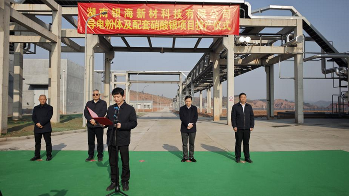 1月21日上午,银海公司导电粉体及配套硝酸银项目一期举行了投产仪式。集团党委副书记、副董事长、总经理董巍出席并致辞,党委委员、副总经理蒋彪,永兴县委、县政府、县政协部分领导以及园区领导参加投产仪式。