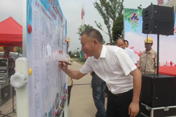 仪式上,海利贵溪公司党委副书记、总经理伍海波对贵溪公司2023年“安全生产月”活动做工作部署。贵溪公司副总经理涂小妹、常德公司副总经理刘金桥、丁硫车间主任李龙水、中化四建公司项目经理杨跃等人作为代表,先后做安全承诺表态发言。随后,刘凌波宣读安全倡议书后,所有参会人员代表依次进行签名活动。