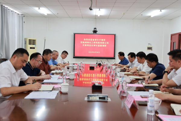 6月26日,湖南省审计厅党组成员、副厅长谢军,二级巡视员吴佳茂等领导一行,到海利集团下属子企业湖南化工研究院有限公司开展调研。