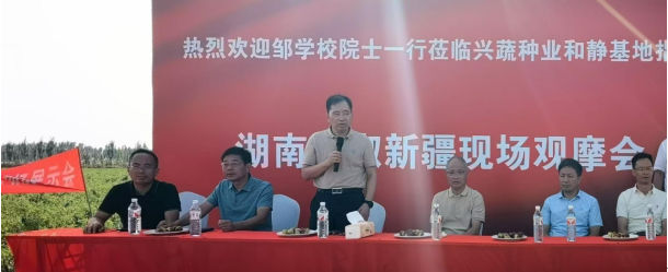 天山突兀拔地起,雪光烛天天尺咫2024年9月19日,带着丰收的喜悦,湖南兴蔬种业辣椒品种新疆现场观摩会隆重召开。本次观摩会由湖南兴蔬种业有限公司与湖南省蔬菜研究所联合主办。中国工程院院士、国家特色蔬菜产业技术体系首席科学家、湖南农业大学校长邹学校,湖南省蔬菜产业技术体系首席科学家戴雄泽,国家特色蔬菜产业体系岗位科学家刘峰,新疆生产建设兵团第二师22团党委书记、政委张鑫,湖南省蔬菜研究所所长李雪峰,湖南兴蔬种业有限公司董事长邹家华莅临现场,共同见证辣椒产业的新篇章。