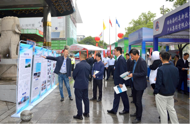 活动在斜风细雨中如期盛大启幕。主舞台和湖南海利集团、湖南国储实业公司等五家单位各具特色的展区为雨中的长沙秋色平添一抹靓丽风景。