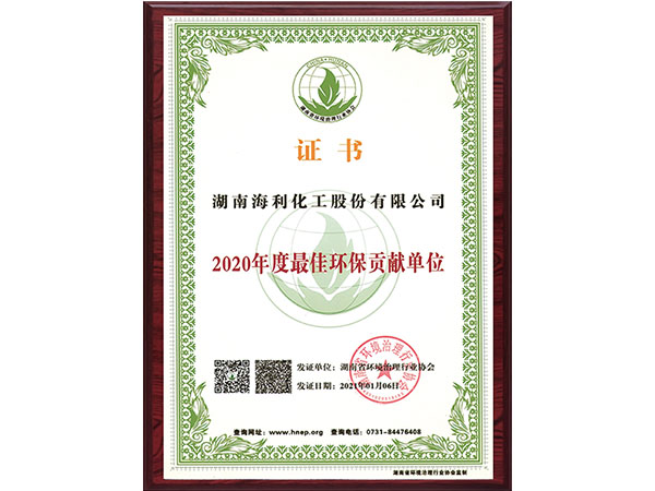 2020年度最佳环保贡献单位