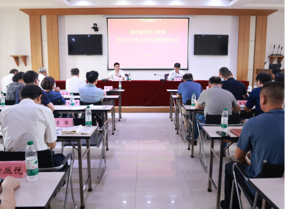 8月29日,海利集团召开学习贯彻党的二十届三中全会精神宣讲会,集团党委书记、董事长肖志勇作宣讲报告。党委副书记、副董事长、总经理董巍主持会议。